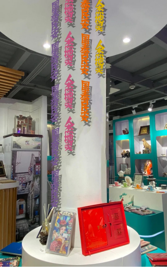 专注于承袭海派文化设计理念,探索年轻一代生活方式的FANTASIE STUDIO所展现的立体纸雕则是此次展会的”颜值担当“,100个串联的充满真挚祝福的立体成语刻字如瀑布般倾泻下来,饱含对党的100周年诞辰的祝福,无数朵鲜艳的立体雕花绽放在柱面上,令人赏心悦目。这些创意的设计无不给现场的观众留下了深刻印象。