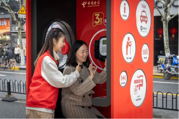 在渔阳里,上海电信数字公话亭成了“学雷锋”主角。在黄浦区团委的组织下,“电信志愿·星火团”志愿服务团队,现场邀请市民利用数字公话亭拍摄风采照,实时生成青春氛围满满的AI照片,活动不仅为市民带来青春能量,也传递出电信的创新创造活力。