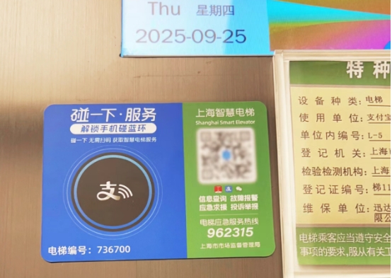 电梯安全状况怎么样?电梯维保单位信用排名?小区电梯维保价格多少?不仅扫码可查,现在,用“支付宝碰一下”也能知道。